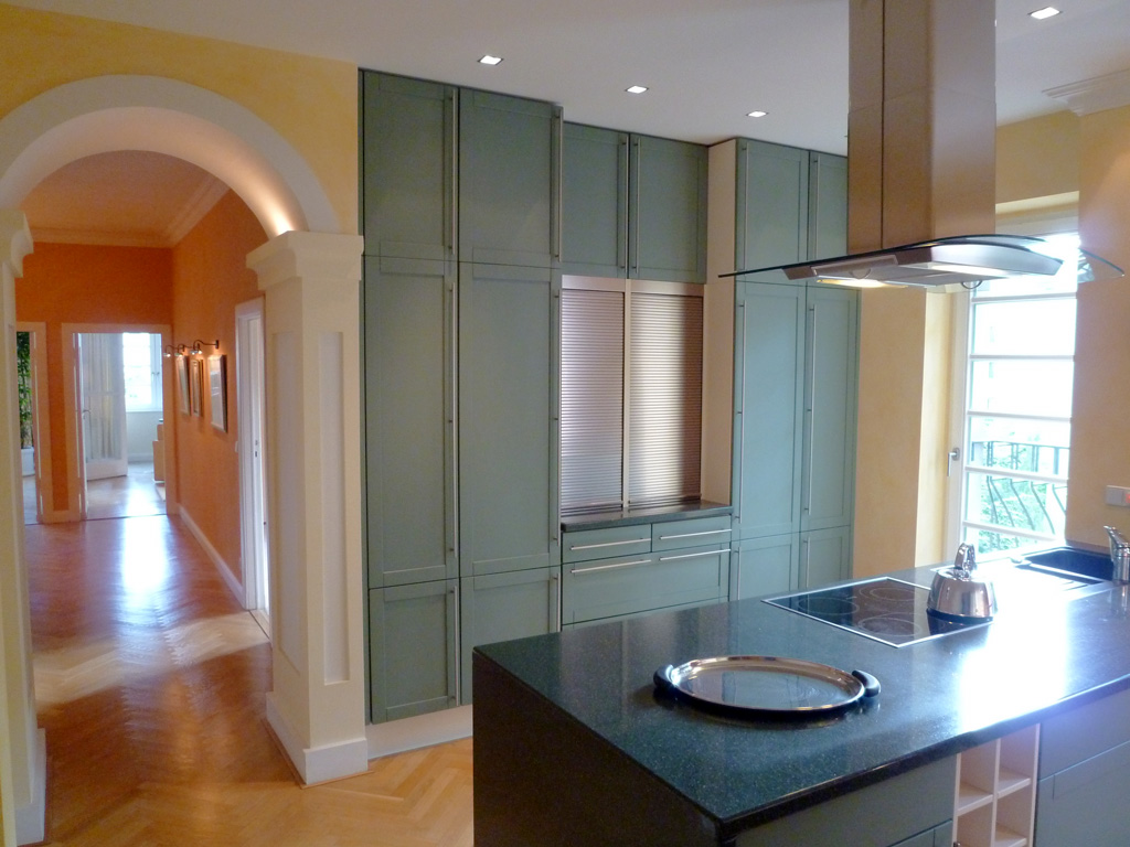 Die Wohnung wurde sehr aufwendig saniert und verfügt über eine besonders hochwertige Ausstattung. Es wurden vom Möbeltischler zahlreiche Einbauten wie Kleiderschränke, Regale und dekorative Heizkörper-Verkleidungen speziell angefertigt.