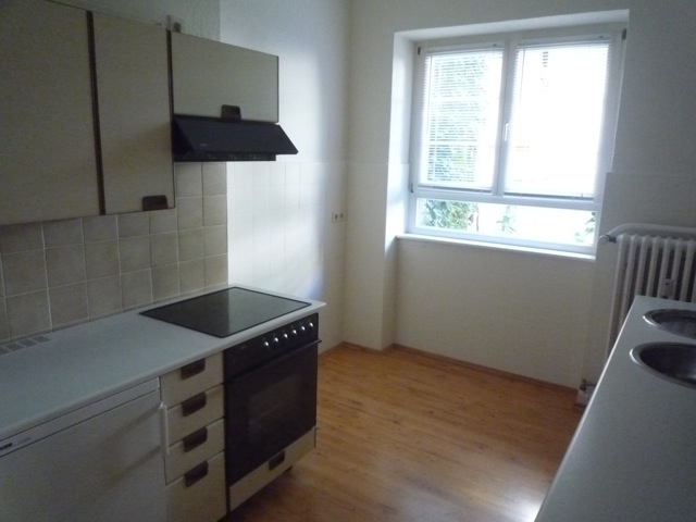 Die beiden Wohnräume sind durch eine Glassprossentür miteinander verbunden, jedoch zusätzlich von der Diele aus jeweils separat zu erreichen. Die Küche ist mit einer Einbauküche ausgestattet, hat noch die historische Speisekammer und bietet Platz genug für einen kleinen Esstisch.